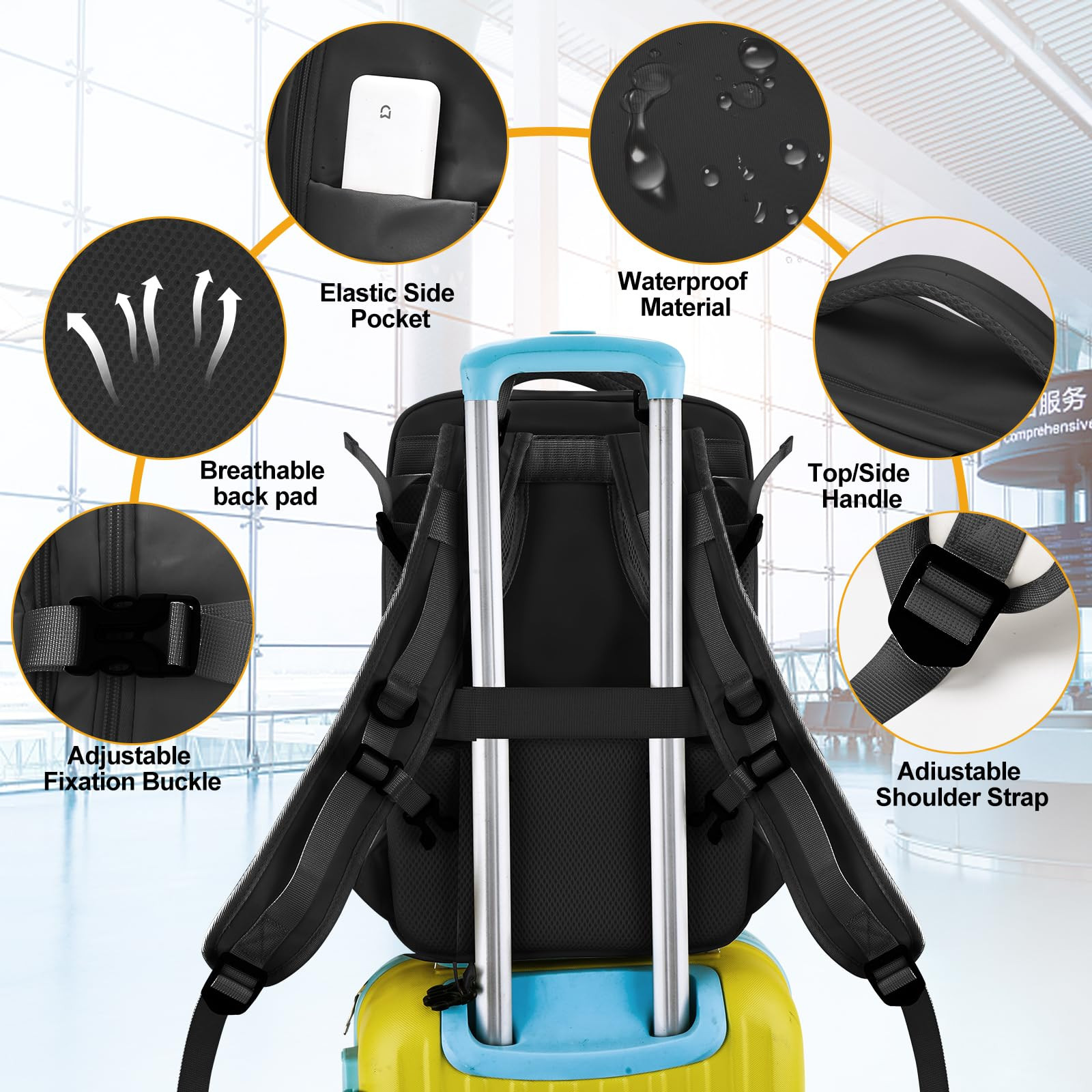 【Large Capacity For Easy Carry 】The backpack external dimensions are 11.81*11.9*16.9 inches, it has a lot of compartments. The main compartment can hold 4 tops and 4 pairs of pants.Side pockets can hold water glasses or umbrellas. There is a front pocket for cell phones, wallets and other small items, and an anti-theft back pocket for cash, cards and more.The daily clothes pocket can hold 4-6 pieces of thin tops or pants, which can meet the needs of short trips or business trips for 2-3 days. 【Comfy And Sturdy】The backpack is made of strong, tear-resistant, waterproof and durable polyester material.Backpack offers heavyweight support without compromising on style or functionality. The lightweight backpack features a wipeable material that eliminates the need for arduous cleaning, whilst adjustable straps, a thickened padded back panel, and bartack sewing at all points provide superior comfort and longevity. 【Wet Pocket Design & Shoe Compartment】Our wet and dry separation layer is made of waterproof, wear-resistant fabric. As long as you put your toiletries in your pocket and zip them up, you won't be afraid to stain your clothes.The shoe compartment is located at the bottom of the backpack, and the separate compartment is designed to be clean and sanitary, and will not stain clothes.The shoe compartment also has vents to keep the shoe compartment ventilated and odor-free. 【USB PORT DESIGN & Airline Approved】 This backpack has a USB charging port that allows you to charge your cell anywhere, anytime with a data cable. Exclusive designed for airplane traveling, this carry on backpack can be opened 90-180 degree easily and quickly at the airport . Designed to fit the maximun size allowed on a flight, it is available to keep under the seat in flight as personal item. 【Great Choice and Perfect Companion】 Available in a variety of colors, the traveling backpack caters to diverse preferences and occasions. With stylish design and practicality combined, our backpack makes it a terrific option and the ideal travel companion for daily life, vacation, weekend getaway, overnight trip, carry-on, business trip, outdoor activities.If you have any questions, you can us, we will be happy to solve your problems.