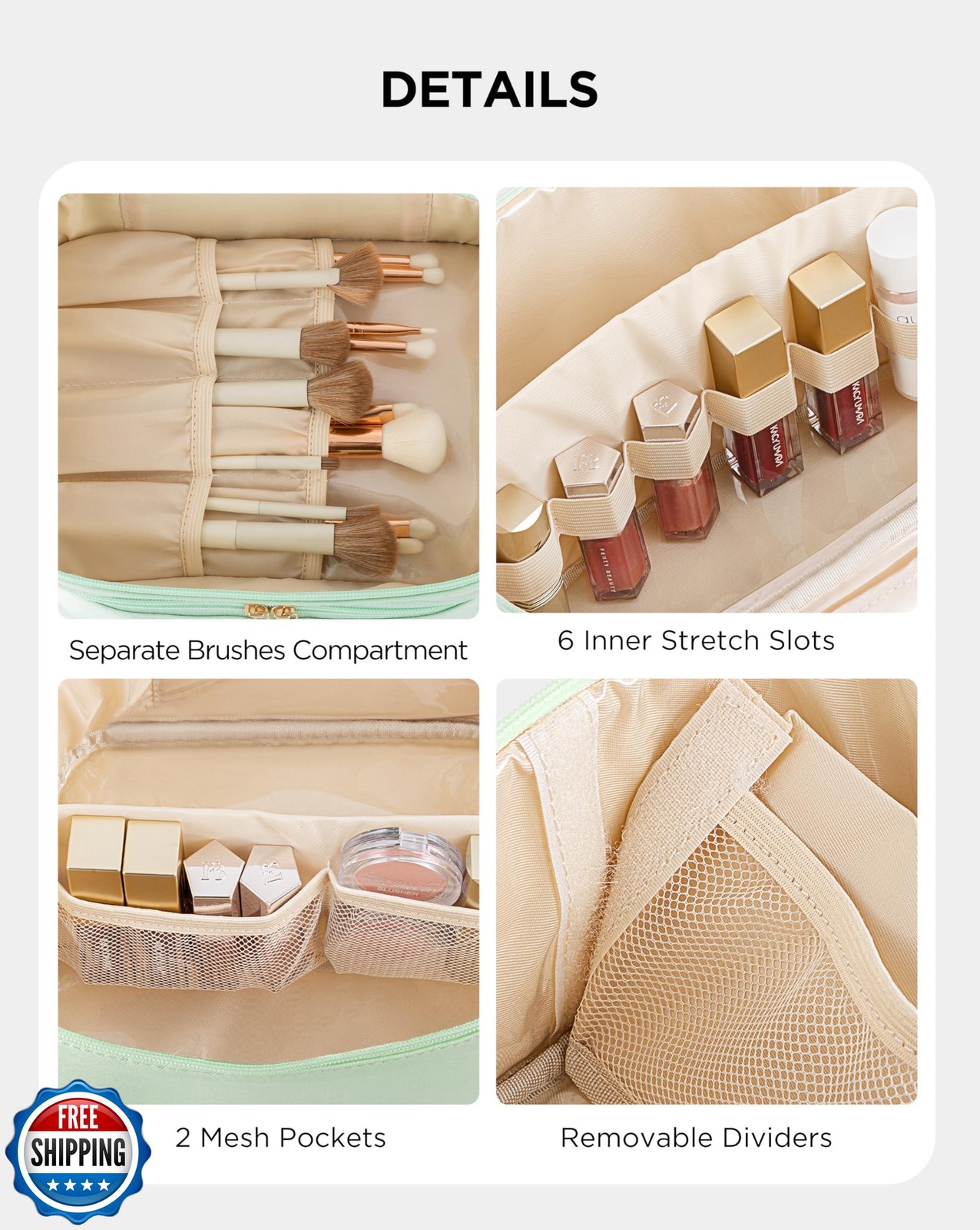 This bag is a game-changer! It holds all my makeup with room to spare, and the clever dividers keep everything perfectly organized. The waterproof material is a lifesaver for travel, and the green color is so chic. Absolutely love it!