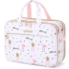 1. 8L SPACIOUS CAPACITY: 13 x 4.3 x 19 inch. ①1 main large capacity compartment with elastic loops to keep all your travel toiletries accessories organized; ② 2 exterior compartments on both sides with PVC lined can separate wet and dry items, a plastic lined compartment that is great for makeup or messier items, and elastic securing loops on the other side plus 9 brush slots for storing makeup brushes, toothpaste, razor and toothbrushes, etc. ③ 1 zip pocket on the front and 1 open pocket on the back for quick access. Suitable for a whole week travel demands. 2. WATERPROOF DESIGN: Water-Resistant material with classy looking flamingo patterns, soft and smooth, lightweight and quick-drying. Easy wipe down if you had something spill in or on it. 3. PROFESSIONAL AND STYLISH: Reliable smooth zippers, every bag is durably stitched and equipped with heavy-duty zippers so that it becomes your most valued companion for years to come! The overall design of the bag is modern and clean. It's not too flashy or ostentatious. 4. CONVENIENT TO USE: The middle section opens easily with a little handle between the 2 top zippers, full access opening of the center section. It is lined on both sides with elastic loop holders, top handle for easy carrying, Two-way zipper closure for quick access. Sleeve on back is great for sliding onto the suitcase. 5. VERSATILITY: It's not just a toiletry bag - it can also be used as a shaving bag or even a small travel bag for other items. Suitable for both home and trip; Compact appearance, saving space. A great choice for business trips, travel, gym, camping, home use and more, also a great gift to friends.