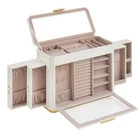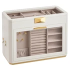 【SHOWCASE YOUR STYLE】Timeless elegance meets modern luxury with this jewelry box from RONNE Collection. Marrying a cut-corner design with woven embossed PU leather accented with baguette cut-inspired hardware, it's your style declaration 【SPACIOUS, SECTIONED STORAGE】Enjoy ultimate organization with 6 distinct zones: 1 top, 1 front display zone, and 4 side drawers. Keep all jewels in one place and each piece in its place, from rings, earrings, necklaces to watches, bangles, sunglasses 【CRAFTED TO PROTECT】A robust MDF frame, water- and wear-resistant PU leather, and soft velvet lining—select materials go hand in hand with this jewelry case for all-around protection, keeping your valuables safe from dust, scratches, and accidents 【EXTRA STORAGE, EXTRA CONVENIENCE】A velvet jewelry pouch is included to keep your precious jewels well cared for, whether in the box or used standalone for travel. A removable earring board that can be used wherever you need takes convenience up a notch 【GIFT TO IMPRESS】Elegant and practical, this jewelry storage box is a heart-winning gift for birthdays, anniversaries, or any special occasion, whether for jewelry lovers, fashion enthusiasts, or as a well-deserved treat for yourself