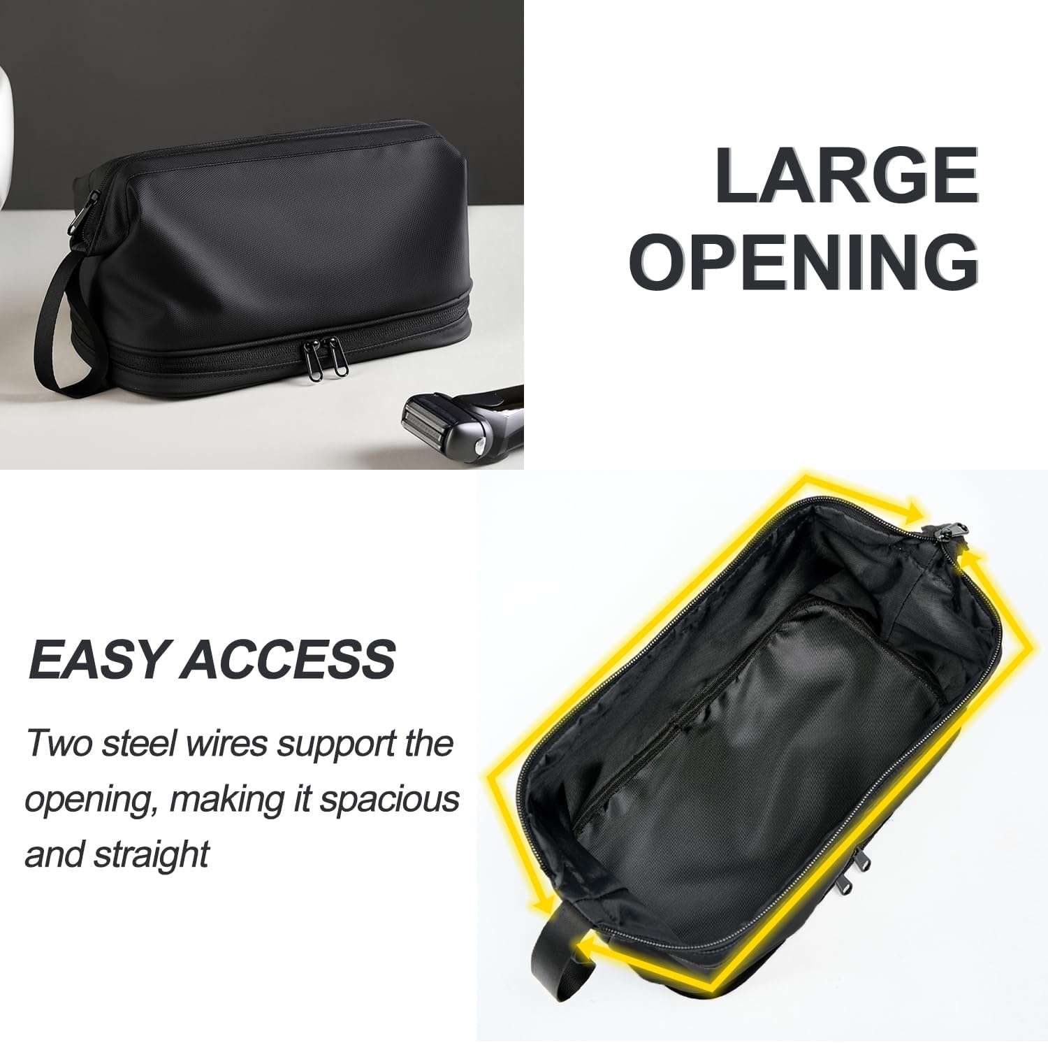 LARGE CAPACITY STORAGE: Dimension: 5.9x5.9x10.2inch, Top carry handle for easy carry,When you go on a tavel, You can pack all items at one time,Make every trip stress-free HIGH QUALITY: The fabric is made of high-density nylon, which is comfortable, lightweight and tough, with waterproof function, you don't need to worry about water splashing on your makeup bag when you wash your hands UNIQUE DESIGN: The product is divided into two storage areas, the bottom of the towel and toothbrush can be placed on the bottom, can also be used as a makeup partition, eyeshadow, makeup brushes are placed separately, clean and tidy MULTI-FUNCTION:Not only can be used as a travel Cosmetic cases, the makeup bag also as a wash bag; a toiletry bag;suitable for all kinds of daily or travel use, and will bring great convenience to your life WONDERFUL GIFT:Give something you like to someone you like. The elegant and practical design often used as a fantastic present in Birthdays;Christmas etc.Ideal gift for that special someone in your life ZIPPING SPECIFICATIONS:The convenience of our durable zipper on this makeup bag,engineered for smooth gliding and long-lasting performance, it ensures easy access to your beauty essentials whenever inspiration strikes Product Description LARGE TRAVEL BAG FOR TOILETRY ROOMY CAPACITY Can Store all Kinds of Toilertries Made of High-Density Waterproof Nylon Material DRY WET SEPARATION Three Colors Available