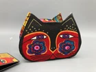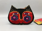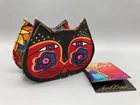 A very cute Sun N Sand for Laurel Burch novelty coin purse. Each side of the purse is shaped like a cat's face. The "red cat" has pretty purple eyes and flowers for cheeks. A fun multi-dimensional piece for any Laurel Burch collector. Features a zip compartment that's perfect for coins, and a zipper in the shape of a cat! Brand new with tags! Measurements Height: 3.5 in Width: 4.5 in Depth: 2.5 in I'm happy to answer any questions or provide more photos. Please note: I am selling other coin purses, handbags, t-shirts, etc., by Laurel Burch in separate listings. If interested, please take a look!