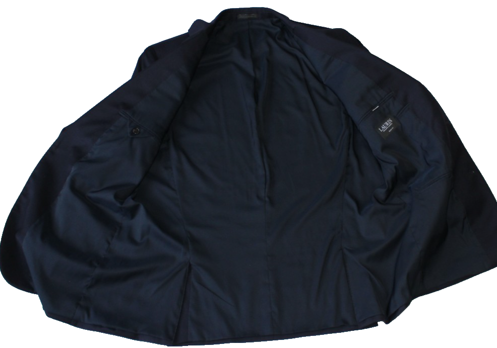 VTG Lauren Ralph Lauren Men's Suit Jacket 50R Pants 42Wx30L Blue Check 100% Wool