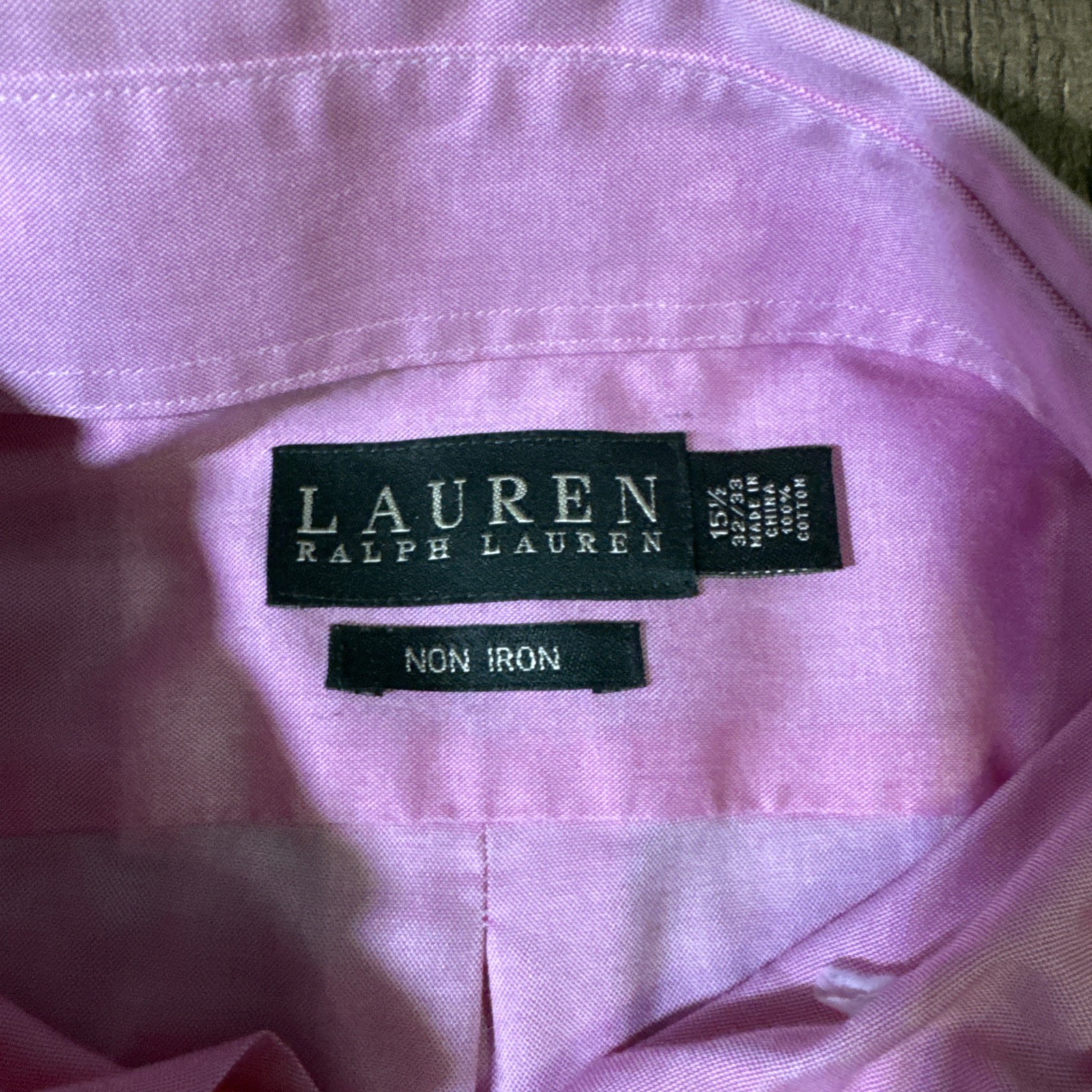 The Lauren Ralph Lauren Men’s 15 1/2 32/33 Non Iron Pink Button Down Shirt is a stylish and versatile dress shirt perfect for both casual and business occasions. Made from 100% cotton, this classic fit shirt features a solid pink color, long sleeves, and a button-down collar with a barrel cuff. With its timeless design and maintenance-free convenience with non-iron feature, this shirt is a must-have for any man's wardrobe.