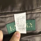 The Lauren Ralph Lauren Men's Gray Wool Blazer in size 42S is a classic and stylish choice for formal or business occasions. Made from high-quality wool, this two-button blazer features a solid gray color, four-button sleeve detail, and inner pockets for added functionality. With a classic fit and short length, this blazer is designed for a sophisticated and timeless look. Perfect for the winter, fall, or spring seasons, this designer piece is a versatile addition to any man's wardrobe.