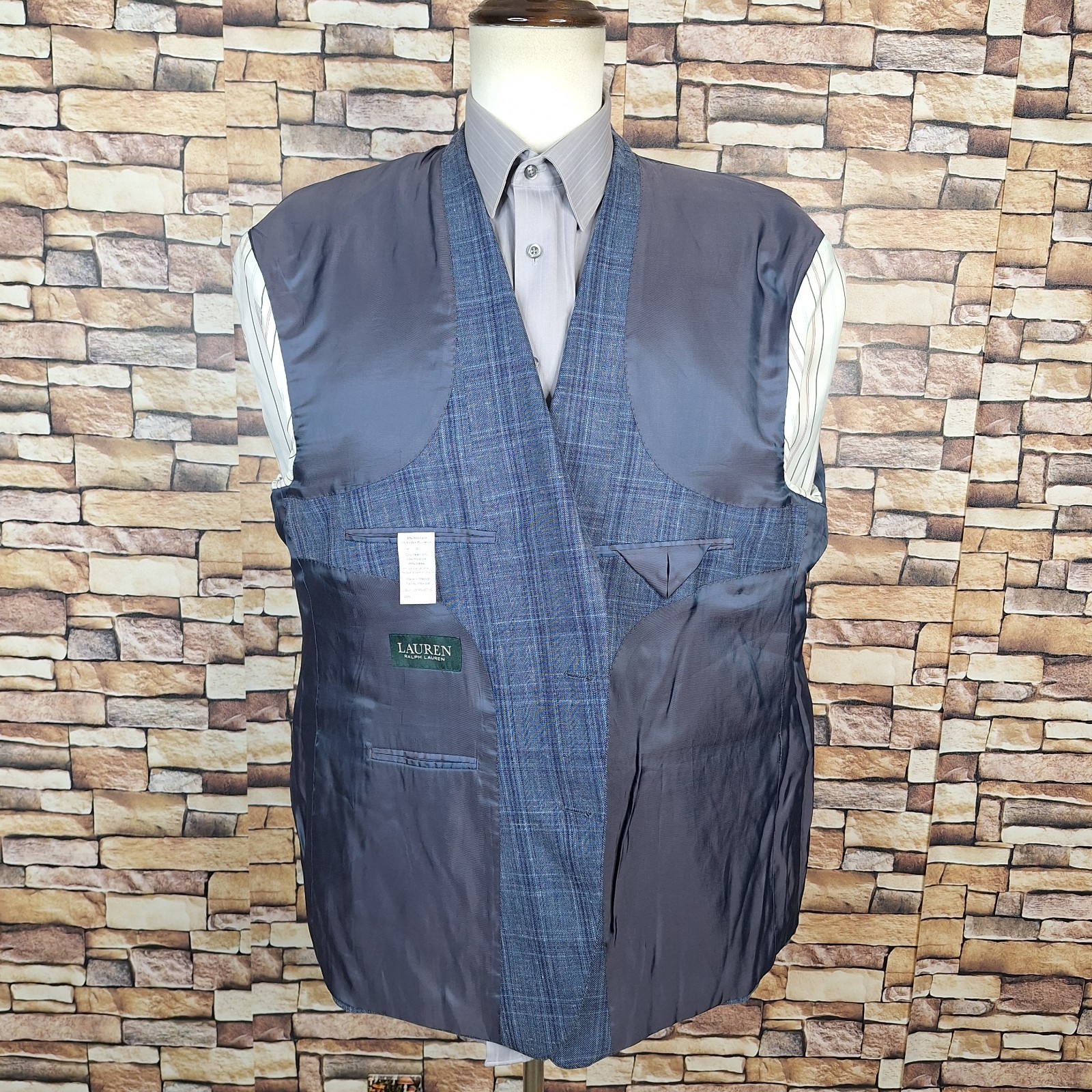Lauren Ralph Lauren Sport Coat Mens 48R Blue Gray Plaid Silk Wool Linen Quality used condition. Please check out the measurements before buying to ensure a perfect fit.DV Shirt Size on Label 48R Shoulder- Hem 30.00'' Shoulder- Shoulder 21.00'' Shoulder- Wrist 25.50'' Armpit- Armpit 25.00'' Top button 24.00'' Everything ships within a day. Spot cleaned according to manufacturer's recommendations. Has a chance of wrinkling in the mail. Feel free to message me with any questions. Thank you very much. 1/26/26