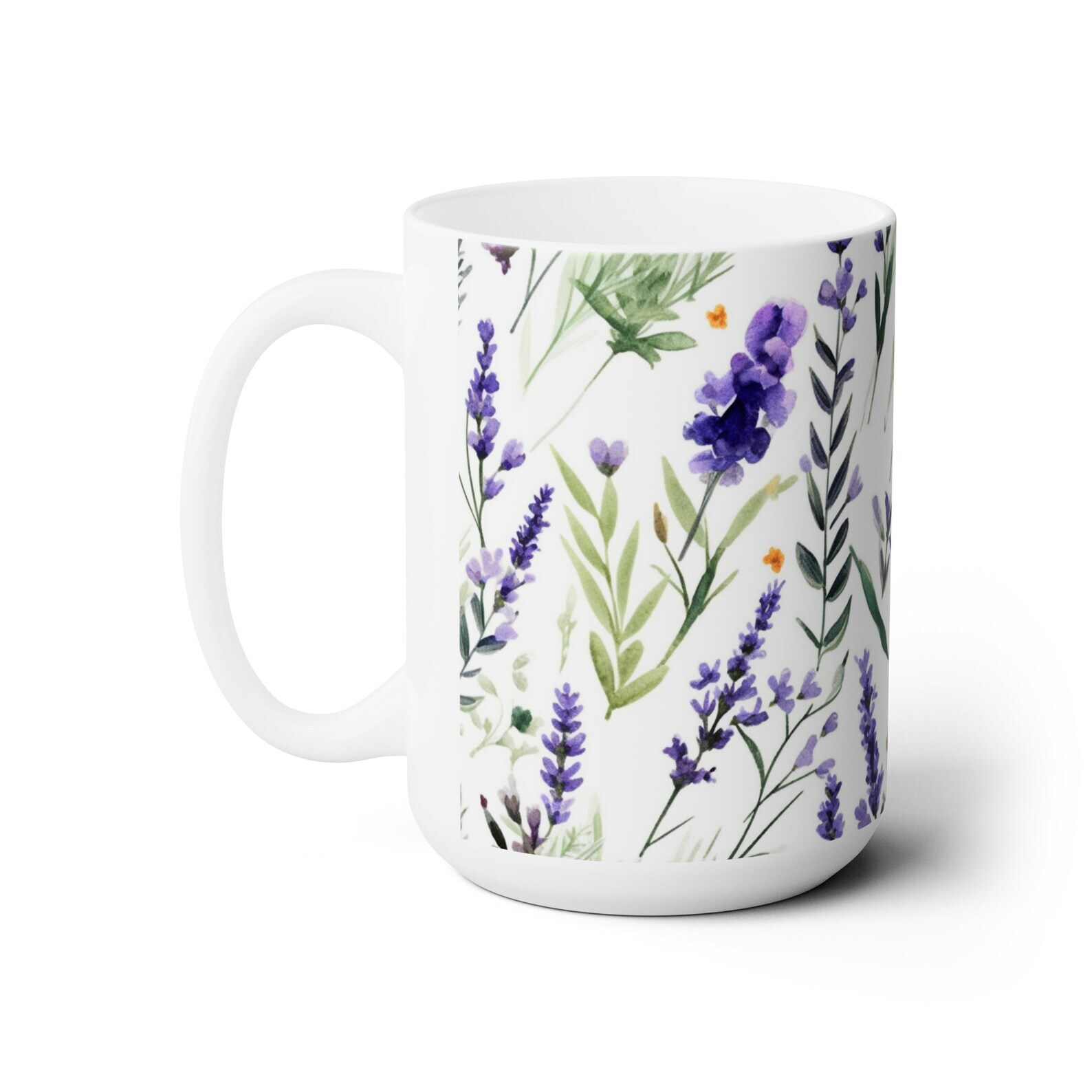 Wildflower Lavender Ceramic Mug 15oz Product Details.. This high quality 11oz. ceramic white mug has a premium hard coat that provides crisp and vibrant color reproduction sure to last for years. Perfect for all hot & cold beverages. The highest quality printing possible is used. It will never fade no matter how many times you wash it. Material: 100% Ceramic. Print both sides. Dishwasher and Microwave Safe. High Gloss + Premium White Finish. Printed in the U.S.A. Personalized & Custom. We support personalized and custom mug to add custom, when placing an order, you can add notes to the "order note" in shipping address section. Also you can contact us directly via message. Shipping Info. Ready to ship in 1 to 2 business days, All products are made-to-order and proudly printed in the United States. Shipped by USPS and DHL, You will receive your order in 5-7 days. Replace & Refund. All products are defective during shipping broken, chipped will be replaced free of charge. You are not satisfied with the product, we will refund 100% money to you. If any other issues arise, please do not hesitate to message, we would be more than happy to assist you.