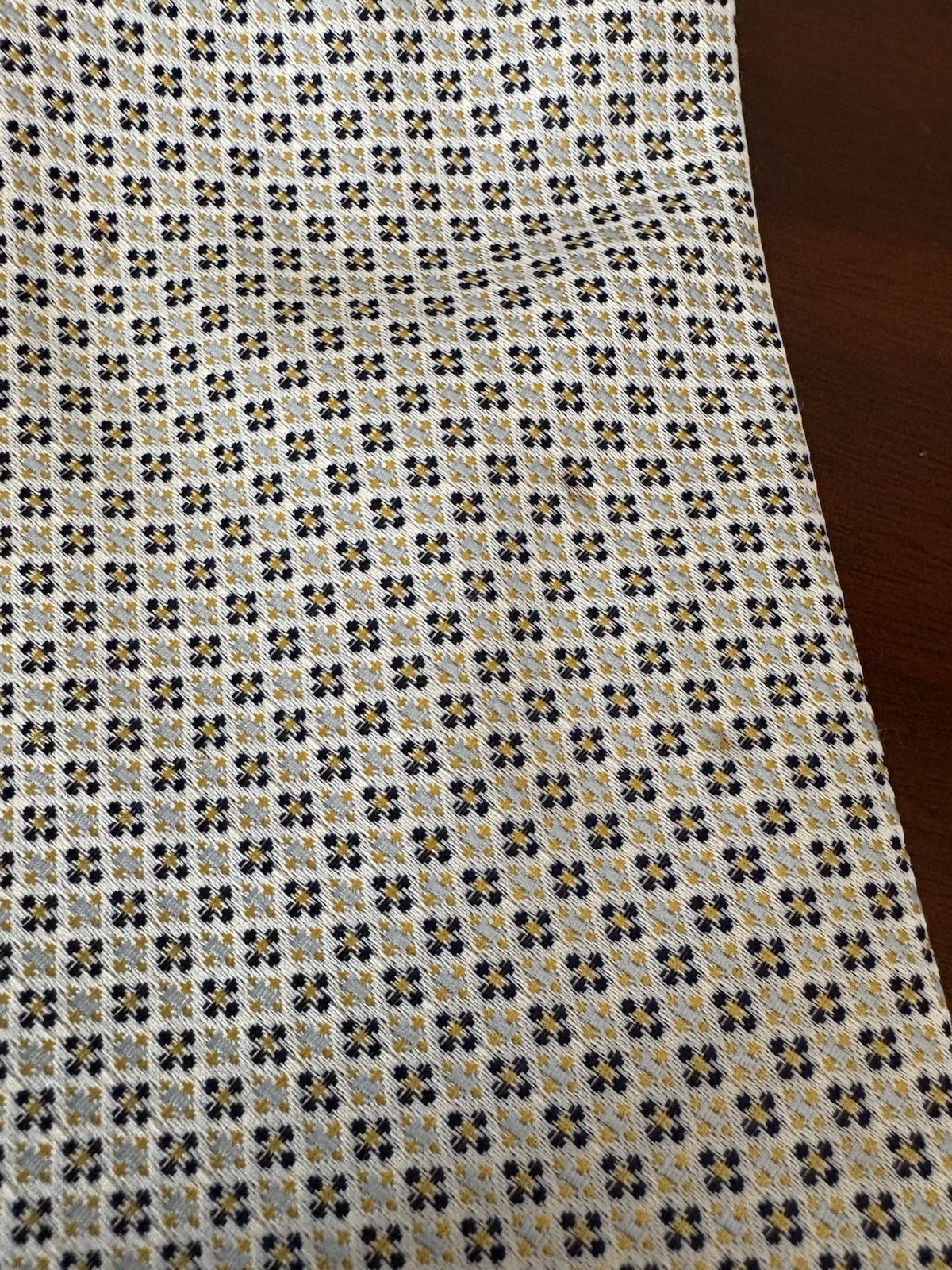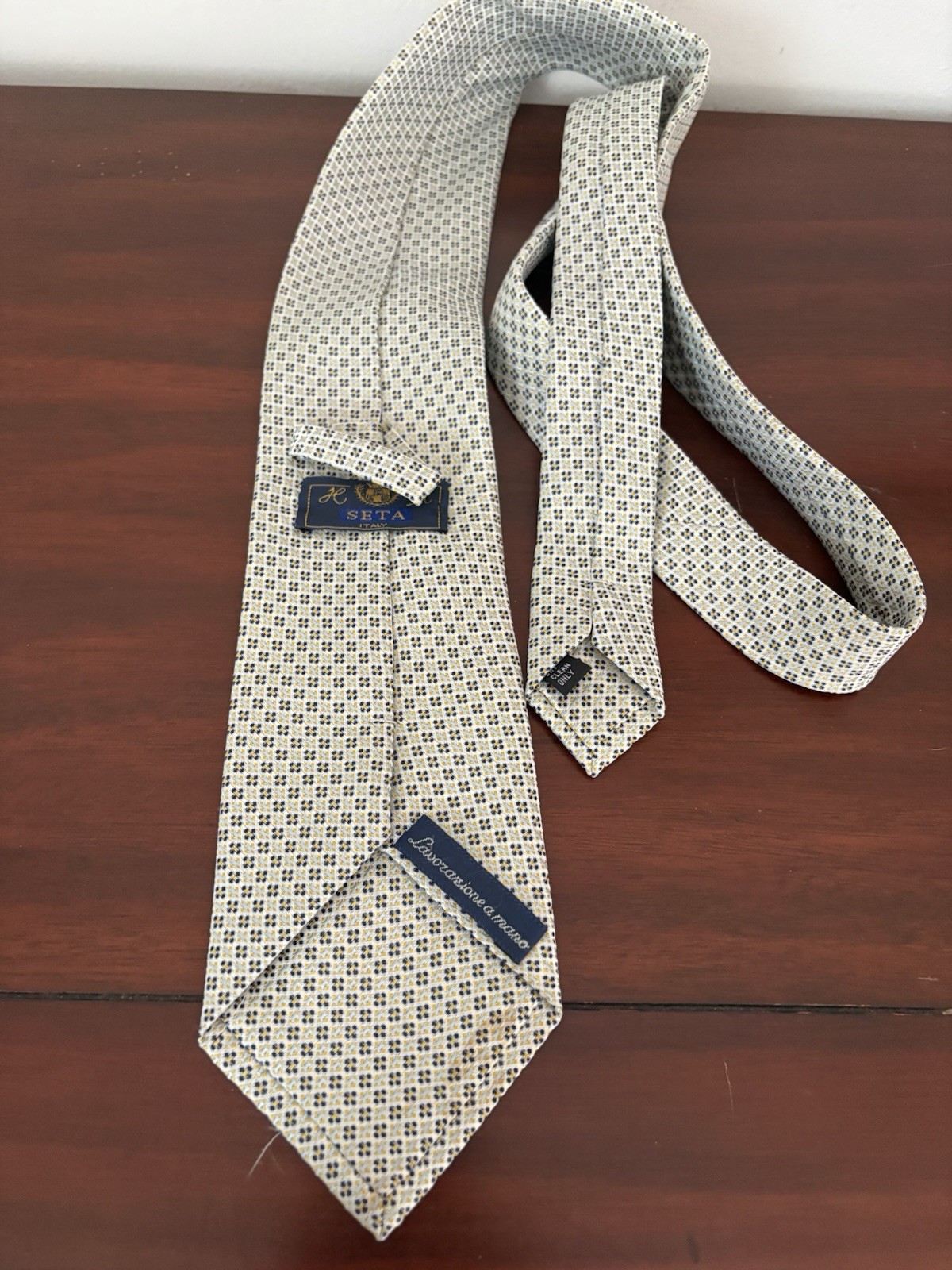 Lavorazione Amaso Men’s Luxury Tie Cream, Blue, Yellow Silk Made In Italy