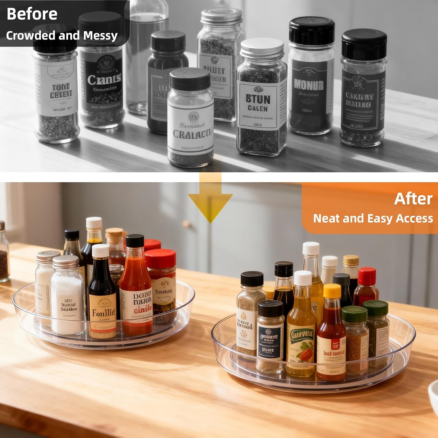 Free eBay listing template designed by dewiso.com Lazy Susan Turntable for Spice Organization | Clear BPA-Free Plastic Rotating Organizer for Kitchen Cabinet, Pantry, Countertop, Fridge | 360-Degree Rotating Base (10 inch - 2 Pack) FREE AND FAST SHIPPING! About this item BPA-Free & Food Safe PET Material: Made from high-quality, food-safe PET plastic, this organizer is a secure choice for storing spices, condiments, and all your food items directly in the refrigerator or pantry. The 360° smooth rotation ends clutter and makes everything easy to access. Lightweight Yet Durable - Easy to Clean and Move: This lightweight plastic lazy susan is shatter-resistant and easy to handle when cleaning. Its compact 10-inch, single-tier design is perfect for fitting into tight refrigerator shelves and cabinets without wasting an inch of space. Crystal Clear for Full Visibility - Minimize Food Waste: The transparent PET material provides a clear overview of all your items, helping you minimize food waste from forgotten groceries. Keep your kitchen and fridge neatly organized and efficient. Versatile Organizer for Every Room: Ideal as a spice rack for cabinet, a fridge organizer for jars, a bathroom vanity tray for toiletries, or even an office supply organizer. Simplify your storage anywhere with this versatile turntable. Practical and Hassle-Free Solution: Engineered for stability and smooth spinning. This simple yet effective organizer solves the problem of lost items in deep spaces, bringing lasting order and convenience to your home. Product We offer a 30-Day Return Policy on items which you are not completely satisfied with. You have the option for a full-refund or an exchange of the item. No returns are available on items shipped outside of the US . Shipping We offer Free Shipping to the US and ship within 2 business days of payment, usually sooner. We use UPS express shipping. That's why your products are usually delivered within 3 days . Contact We try our very best to make sure every customer is completely satisfied. If there's a problem , message us! We're happy to help. 24/7 live chat available.
