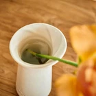 $ 13.2White Ceramic Vase for Home Decor,Decorative Flower Vase, Vertical Stripe Cer