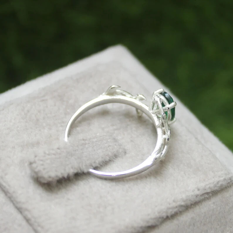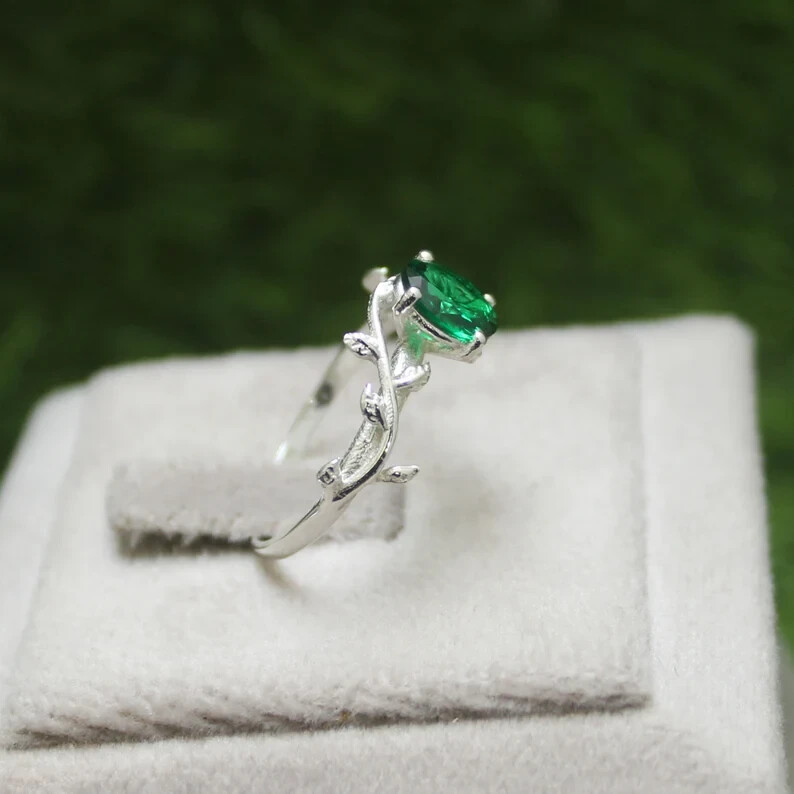 This leaf shape ring is a handmade 925 sterling silver emerald engagement ring, perfect for special occasions like engagement, weddings, anniversaries, birthdays, and holiday celebrations. The oval-shaped green emerald is set in a band style ring with engraved details, creating a beautiful and unique piece of jewelry. The ring is vintage-inspired and crafted with excellent cut quality, making it a stunning choice for those looking for a unique and timeless piece of jewelry. Made in India, this ring is available in size 6.0 and comes with seller warranty for added peace of mind.