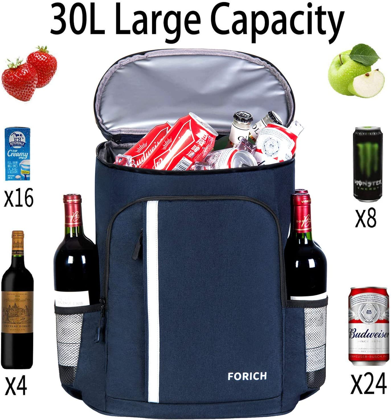 Menu Other Items Feedbacks About Us Contact Us Add To Favorites Backpack Cooler Leakproof Insulated Waterproof Backpack Cooler Bag, Lightweight Soft Beach Cooler Backpack for Men Women to Work Lunch Picnics Camping Hiking, 30 Cans LARGE CAPACITY: 30 Cans/30L, Measures: 18.1”x13.3”x7.9”. FORICH insulated cooler backpack has enough space for all your necessities. LEAKPROOF COOLER BACKPACK: Upgraded inner insulated thicken material and leak proof liner retains drinks/food cold or hot for many hours and anti-leaking. The interior lining is made of excellent upgrade material and easy to clean. LIGHTWEIGHT & DURABLE: FORICH large backpack coolers made of heavy duty durable fabric, never rip, tear or scratch but also lightweight. High quality zipper is easy to pull smoothly. Adjustable shoulder straps and ergonomic design with padded sections on the back for comfortable and soft. MULTI PURPOSE: FORICH soft cooler bag waterproof is a great partner for outdoor activities. It is not only can be a insulated picnic backpack, but also beach cooler backpack, hiking backpack, camping backpack, fishing bag, travel backpack and so on. MULTIPLE POCKETS: 1 main large soft coolers insulated leak proof storage compartment for drinks or food, 2 large zipper pocket in front for your dry items, and 1 zipper pocket on the lid used to organize small items, 2 plus large mesh side pockets which are perfect space for tall beverages or water bottle. 1 beer opener and 1 mesh pocket for phone on the strap. Perfect awesome cooler backpack! FORICH Cooler Backpack Insulated Cooler Backpack Bag Lightweight Soft Beach Cooler Backpack for Men Women to Work Picnics Camping Hiking Park Day Trips, 30 Cans Essential companion for your outdoor activities! Forich backpack cooler backpack is a perfect partner for you to enjoy a outdoor picnic with your family, or attend a party with friends. Roomy enough to organizer things: This cooler backpack large enough to provide roomy capacity keep all your things organized. Capaticy: 30 cans/30L, Measures: 17.7”x13.3”x7.9”. Durable & Lightweight & Comfortable : Forich lightweight insulated backpack cooler made of heavy duty durable fabric, also inner thicken foam insulation and high quality heat-sealed leak proof lining work together to make the large backpack cooler anti-leaking and cool/hot fresh. 100% resistant. The stylish soft cooler bag designed with adjustable shoulder straps and breathable mesh back pads, which make sure comfortable and ergonomic. The insulated cooler backpack is convenient to carry with top handle. Multi Purpose insulated backpack: This backpack with cooler is a multi purpose backpack. The soft backpack cooler is a good choice to be beach cooler backpack, picnic backpack, hiking backpack, camping backpack, fishing bag, travel backpack and you can also used to work, weekend or park day trip. Item Specification Warranty Description 60 days Capacity 30 Liters Pattern Solid Style A161 - Blue Package Weight 0.9 Kilograms Material Polyester Suggested Users unisex-adult Model Name -cooler backpack -02 Package Information Bag Item Package Dimensions L x W x H 17.32 x 13.7 x 2.13 inches Water Resistance Level Waterproof Item Weight 1.5 Pounds Special Feature Insulated,Lightweight Chamber Height 7.9 Inches Item Dimensions LxWxH 13.3 x 7.9 x 18.1 inches Color Blue Insulation Material Foam Recommended Uses For Product Camping Chamber Depth 13.3 Inches Included Components no Product Dimensions 7.9"D x 13.3"W x 18.1"H Product Care Instructions hand washing Size Blue Dimensions Shipping Returns Additional Info Product Dimensions: 13.7 inches x 17.32 inches x 2.13 inches. Weight: 1.5 lb Fast shipping is very important for us. Our standard shipping service is FREE. Your order will be shipped within 1-3 business days upon full payment received. Most items are delivered within 3-5 business days, however, please allow 3-10 business days. We are shipping only to USA. We only ship to the confirmed Paypal address. We reserve the right to cancel any order for any reason at any time. We are not responsible for undeliverable addresses. We offer a 30 day return policy from checkout winning date. Your satisfaction is guaranteed! If for any reason you are unhappy with your item, just return it within 30 days for a full refund, minus shipping cost. Please contact us prior to initiating a return so that we can issue you a refund authorization. Items defective upon receipt must be packaged in their retail packaging as if new and returned with a detailed description of the problem. Return shipping fees are not refundable. We reserve the right to decline any returns if the above guidelines are not followed. All of our items, unless otherwise stated, will only run on 120 volts. Please check to make sure your country complies with these specifications. If you have a problem or question regarding your transaction please contact us before leaving any type of feedback. We will work with you to resolve any problem you may have.