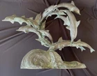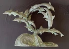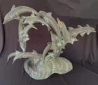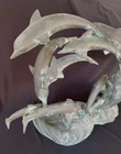 This is a large size stylish 15 dolphins sculpture in verdigris bronze (perhaps mixed metals) color. It measures about 24 inches wide, 19 inches tall and 8 inches deep. It weighs about 16.5 pounds. I do not see any mark or signature but it appears to be very well made. Condition is previously owned and as shown! A can of soda is placed for size reference and not included. Shipping cost is due to the bulking size, expensive shipping and the necessary insurance for your protection. I will probably ship via UPS Ground. * * * Non-smoking environment! * * *