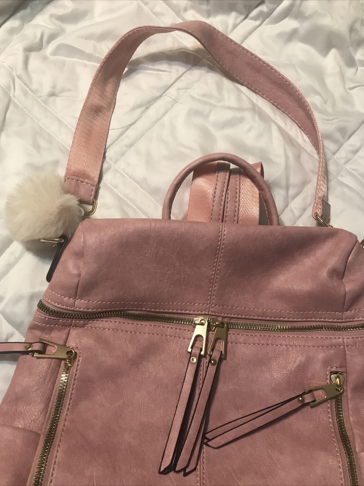 Imported Polyester lining Zipper closure MATERIAL:This woman's backpack is made of high-quality PU leather, soft, smooth and without any smell.The soft and smooth cotton lining makes the interior feel very delicate. The high-quality hardware is smooth and does not fade. The pu leather zipper head and Pom Pom make the backpack both fashionable and cute. DESIGN:The design of this backpack is different from the ordinary model, the main bag zipper traverses the entire backpack, and has two zipper heads, both sides can open the backpack, this makes the backpack very convenient and quick to use. The back of the backpack is equipped with a headphone jack, so you can enjoy the music at any time and anywhere. FUNCTION: Each backpack is equipped with a long shoulder strap. With this long shoulder strap, it can be converted from a backpack to a shoulder bag, stylish and practical. CAPACITY:The backpack has a total of 9 pockets, two front zip pockets, two side pockets, a main bag, an internal zip pocket, a cell phone pocket, a document pocket, back of the backpack has a anti-theft zip pocket. so the capacity is large enough. DIMENSIONS: 12.2“ (L)* 5.11” (W)* 12.99“(H),Roomy enough hold your A4 books, iPad, cell phone, wallet, umbrella, glasses case, cosmetic etc.Great for women or girls daily fashion backpack. A great gift for girls, women, and ladies. And never go out of style.