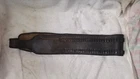 Antique Leather Belt with 100 22 Cartridge or Bullet Loops Brown Leather with Silver Buckle Not marked:no maker's name or markings Size is not marked. Measures 43" long from the end of the leather part not including the buckle to the end of the belt with the holes in it. There are seven adjustment holes, the last one (smallest fit) being at 35. Width is 3 1/2" Good condition. Leather is still supple, has some light crackling to the finish from flexing. Holes are not stretched out. One bullet loop has split (see photo).
