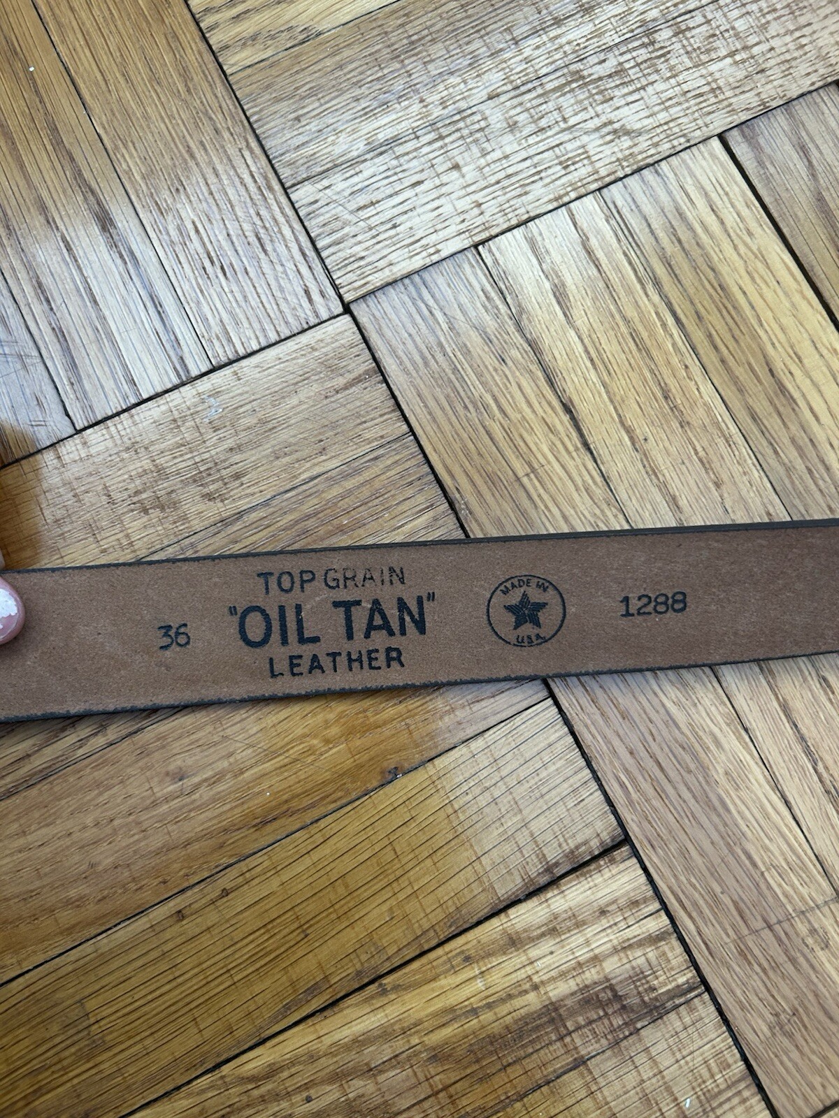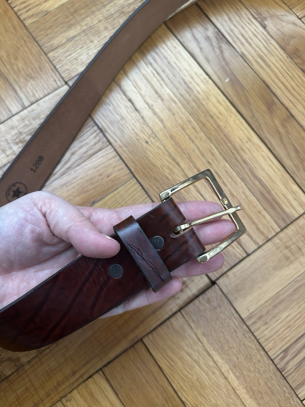Leather Belt Brown Oil Tan Top Grain Mens Jeans Gold Tone Buckle SZ 36 USA NOS