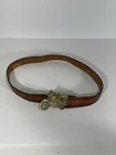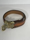 Leather Belt Brown with Large Gold Brass Motorcycle Bike Buckle Luxury Belt. Side L/XL About 40” Cx116