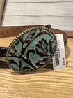 Rope Edge Cowboy Turquoise Leather Belt Buckle. This unique statement piece is the perfect accessory to complete your wardrobe. We offer hair-on-hide leathers or embossed hand-finished styles. Gorgeous Statement Piece Approximately 4" long by 3" wide. Antique gold finish Easily attaches to any belt with snaps or screw-in rivets