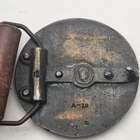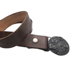 BROWN LEATHER Belt 33" to last buckle hole. 1.5/8" wide. Brass Buckle Clock Gears Steampunk Vintage Am. Watchmaker Co NY Railroad.