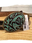Rope Edge Cowboy Turquoise Leather Belt Buckle. This unique statement piece is the perfect accessory to complete your wardrobe. We offer hair-on-hide leathers or embossed hand-finished styles. Gorgeous Statement Piece Approximately 4" long by 3" wide. Antique gold finish Easily attaches to any belt with snaps or screw-in rivets