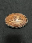 Leather Belt Buckle U.S.A. Handmade . Condition is Pre-owned. Shipped with USPS Ground Advantage.