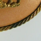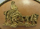 Cowboy & Bull Leather Belt Buckle Metal Rope Trim - May be brass or copper Western Rodeo Made in Mexico *small stain on leather, some patina/discoloration on rope trim -- shown in photos Approximate Measurements:" 4"L x 2.75"H