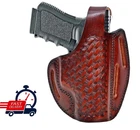 100% GENUINE LEATHER 100% HANDMADE BASKET WEAVE ★ Specially Selected Cowhide Leather With Strong Stitching. ★ The thickness of the leather used is usually 3 - 3.2 mm. ★ Easy Smooth Insertion, Carry and Retrieval of Your Handgun. ★ Thanks to its belt entry from 2 different angles, it provides the opportunity to carry your weapon in a diagonal and vertical position. ★ Double stitched areas are applied to protect the product form, increase durability and visual quality. ★ Thanks to the safety lock on the holster, it provides the opportunity to carry your gun safely. ★ Cover edges are carefully painted by hand with the help of a small sponge. ★ After all stages, 2 coats of varnish are applied to the cover. In this way, it prevents negative factors such as water, moisture and sweat that can damage the holster. ★ The cowhide used in our products is completely natural and does not contain any chemicals. ★ There will be a custom charge on holsters made for specially altered handguns. Please email for information.