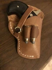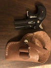 *NO FIREARM IS EVER INCLUDED SHOWN ONLY FOR DISPLAYING FIT. * ITEM IS USED, AND DOES HAVE SOME WEAR. STILL A VERY GOOD HOLSTER WITH LOTS OF LIFE LEFT. SOLD AS IS NO RETURNS. *Right Hand Draw. *LOOKS TO FIT UP TO A 2.75" BARREL * WITHOUT A TRIGGER GUARD *THE CARTRIDGE LOOPS HOLD TWO 38 SPECIAL OR 357 MAGNUM ROUNDS. *VIEW MY EBAY STORE FOR MORE AUCTIONS & BUY IT NOW OPTIONS. FIT: Fits the Davis, Cimarron CFA, Cobra Arms & American Derringer with up to a 2.75" Barrel & No Trigger Guard . *( will NOT fit the bond arms derringers, will not fit if your derringer has a trigger guard ) Best with a Medium size Derringer - Brown Leather Belt Holster. Holster is Brand New. Any questions you may have email me and i'll do my best to answer them. *IF FOR ANY REASON YOU HAVE A PROBLEM WITH YOUR ITEM, JUST EMAIL ME AND LET ME KNOW AND I'LL DO MY BEST TO MAKE IT RIGHT. *FREE SHIPPING IN THE USA, 1ST CLASS GROUND. PRIORITY MAIL UPGRADE AVAILABLE. * NEW MEXICO RESI DENTS ARE REQUIRED TO PAY STATE SALES TAX. View my other auctions for other great items. Buyer is expected to pay at the time of purchase . *Ebay will Email each person and let you know when your item will be shipped out. * PLEASE READ ALL DETAILS OF THE AUCTION BEFORE YOU BID, IT'S ONLY FAIR TO YOU AND I.