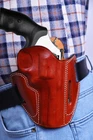 100% GENUINE LEATHER 100% HANDMADE ★ Specially Selected Cowhide Leather With Strong Stitching. ★ The thickness of the leather used is usually 3 - 3.2 mm. ★ Easy Smooth Insertion, Carry and Retrieval of Your Handgun. ★ Double stitched areas are applied to protect the product form, increase durability and visual quality. ★ The open top design offers a swift draw and presentation, while detailed molding provides secure retention. ★ Thanks to the holster shield in the holster, it prevents the gun from contacting the body. ★ Thanks to its belt entry from 2 different angles, it provides the opportunity to carry your weapon in a diagonal and vertical position. ★ Cover edges are carefully painted by hand with the help of a small sponge. ★ After all stages, 2 coats of varnish are applied to the cover. In this way, it prevents negative factors such as water, moisture and sweat that can damage the holster. ★ The cowhide used in our products is completely natural and does not contain any chemicals. ★ There will be a custom charge on holsters made for specially altered handguns. Please email for information.