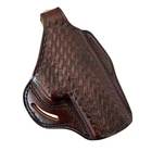 Elevate your firearm carrying experience with our premium handcrafted leather holster, expertly designed to accommodate a wide array of Glock models, including the 17, 19, 21, 23, 26, 27, 29, 30, 42, and 43x. Crafted from high-quality 3mm thick smooth leather, this holster offers both durability and style, ensuring a secure and comfortable fit for your handgun. Key Features: Basket Weave Design: Our holster features an intricate basket weave pattern, adding a touch of sophistication and individuality. This stylish design not only enhances the appearance but also provides additional grip for easier handling. Handcrafted Excellence: Each holster is meticulously handmade by skilled artisans, reflecting exceptional craftsmanship and attention to detail. The handcrafted nature ensures that every piece is unique, with a perfect balance of functionality and aesthetics. Perfect Fit for Glock Models: Custom-molded to fit a wide range of Glock models, our holster guarantees a snug and secure fit, preventing any unwanted movement. The precision molding ensures that your firearm is held securely, while still allowing for a smooth and quick draw. Premium Smooth Leather: Made from top-grade, smooth leather, our holster is designed for durability and long-lasting use. The high-quality leather not only looks sleek and professional but also provides a comfortable feel against your skin. Secure Safety Strap: Equipped with a robust safety strap, our holster ensures that your firearm stays securely in place, even during vigorous activities. The safety strap is easy to operate, allowing for quick access when needed, without compromising on security. Why Choose Our Leather Holster? Our leather holster is more than just a carrying accessory; it's a statement of quality and craftsmanship. Whether you're a professional in the field, a firearms enthusiast, or someone who values premium quality accessories, our holster is designed to meet your needs. It offers reliable protection for your firearm, ensuring that it remains in pristine condition. Comfort and Convenience: Designed with the user's comfort in mind, our holster is lightweight and easy to wear for extended periods. The smooth leather interior prevents scratches on your firearm, while the well-crafted exterior offers a professional and polished look. The basket weave design not only adds an aesthetic appeal but also enhances grip, making it easier to handle. Perfect for Every Occasion: Whether you're heading to the shooting range, on duty, or simply carrying for personal protection, our leather holster is the perfect companion. Its elegant design makes it suitable for both casual and formal settings, ensuring that you carry your firearm with confidence and style. Invest in a holster that embodies quality, style, and functionality. Order yours today and experience the difference of a handcrafted leather holster designed specifically for your Glock.