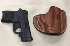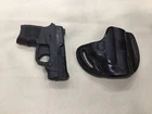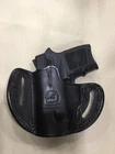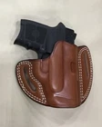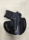MASTER'S brand Pancake style premium leather Belt holster f or Smith & Wesson BODYGUARD .380. Fits both models with or without laser. Also fits: SIG P238 KAHR PM380 MASTER'S brand PANCAKE style leather hip holster for belt. Custom molded by hand from heavy, top grain genuine Italian cowhide leather with beautiful stitching and first class craftsmanship. This is a very high quality holster comparable to Galco, but lower priced. STYLE: PANCAKE style outside the waistband. Requires belt. FEATURES: Open top design for fast draw The PANCAKE design keeps the weapon close to the body, enhancing concealment Snugness of the weapon inside the holster could be controlled by tightness of belt Covers the trigger and the barrel completely High ride, forward cant (similar to FBI cant) Belt slots accommodate belts up to 1 5/8 " wide and 3/8 " thick PLEASE SELECT COLOR