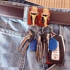Note: each embossing will be different. This item is for one keychain,not including other accessories. Please be reminded that due to lighting effects and monitor brightness/contrast setting, the color tone of the website photo and the actual item could be slightly different. Material: leather, brass Color: black, brown Size: single ring: width 1.18 in/3 cm, leather thickness 1.5-2 mm double ring: width 2.36 in/6 cm, leather thickness 1.5-2 mm It can pass through a belt less than 4 cm wide. Package Includes: 1 x Keychain SKU: 944-B670