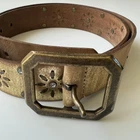 Leather Belt Large Gold Buckle Starburst Rhinestone Gold Metallic Western