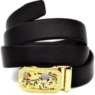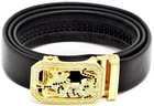 Genuine full grain cowhidecommon soft Satin Black leather belts for men. Belt men dimensions; wide 3.8cm.Waist size, 28" Up to 44”. It can be trimmed for a perfect fit. Easily removable alloybuckle makes it easy to trim the belt’s strap to a desire length. bb beltleather is soft, strong, durable, and elegance making a perfect wearing for anyoccasion. ratchet buckles for men comes with 32 position rubber ratchettracking for up to 7.5” of adjustment. Luxury diamond/Gold-like belt Cat buckle for anelegant and professional business appearance.