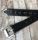 Leather Belt Men's Size 46 Black Woven Cut-Out Design Good pre-owned condition. Shows regular signs of wear (pictured). Please see all photos for all measurements and more details.