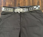 Custom Vintage Buckle Buffalo Leather Belt ✨ Limited Edition ✨ This unique belt reflects the speed and brilliance of a vintage truck’s glow. Handcrafted with precision, it’s made from genuine buffalo leather and features a retro 70’s truck buckle that’s a true collector’s piece. Please note: This belt includes only the vintage truck buckle. The Harley buckle is not included. Features: • Retro Vintage Belt Buckle (70’s style): Approx. 8.5 cm long x 5.5 cm high. • Convenient snap system allows you to easily interchange buckles, making it perfect for any occasion. • High-quality buffalo leather belt – durable yet lightweight, with a fully customized design. • Each piece is signed by the author, certifying its authenticity and uniqueness. • Size: Small-Medium (34-36). Why Choose Us? At King Cocha Designs, every piece is one-of-a-kind. Our belts are customized and hand-painted with care, ensuring no two are alike. We don’t do mass production—this is your chance to own something truly exclusive. Price Justification: The price reflects the craftsmanship, NYC taxes, and eBay fees, ensuring you receive a premium-quality product. Payment Options: We accept PayPal—scan the QR code for secure and easy payment. Don’t Miss Out! This is the only piece available—an exclusive design for those who value authenticity and individuality. King Cocha Designs – Crafted with passion, designed for you.y