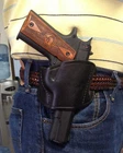 Pro-Tech Outdoors Leather Belt Slide Gun Holster Size Large Quality Leather Heavy Nylon/Cotton Stitching Good Looking Holster that your friends will admire Fits up to 1.5" wide belt We ship same day to next day Monday thru Friday, and Saturday and Sunday orders shipped out on Monday. If you have questions, please let us know. We strive for 100% customer satisfaction. Free shipping within USA.