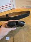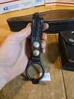The overall length of the belt is 46 inches. From the stud to the farthest hole in the belt is 37 inches. The belt looks to be in good condition. The magazine pouch looks to have been heavily used, but still functional. It will fit glock G17-19-22- 23 mags also beretta 92, ruger p89, sig 226/229. The Baton holster/holder looks to be in good working condition. Please message me if you have any questions. Please look at the pictures before bidding. I DO NOT SHIP OUTSIDE OF THE UNITED STATES! *Ignore the Dillon counter and paper in the final picture. It is not included; it is for our records.* *You are responsible for knowing all your state and local laws. The act of Bidding on an item is you verifying you are legal to own the item in your state.*