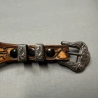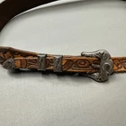 Offered in this listing: Leather Belt Western Southwest Tapered Sterling Silver Very Good condition. ****PLEASE READ**** Size is an approximation based on measurements and tag information. Please see images for actual measurements. Please view images for more details. Same day shipping on all orders. Combined shipping calculated in cart. Thanks for your interest!