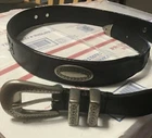 Leather Belt Women’s 34-38” Metal Decor Metal Buckle and Metal end Cap. Looks like a Brighton type but didn’t see any markings to verify that. Nice belt with minimal wear. Very little on the smallest belt hole as seen in photo. Great condition. Thank you for looking.