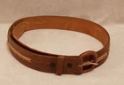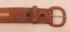 THIS IS AN INTRIGUING BELT THAT HAS INTRICATE DESIGNS, SCALLOPING AND LEATHER STITCHING AT BEGINNING IN THE PATTERN OF X'S. ALSO HAS STITCHED DESIGN IN MIDDLE OF BELT. THE BELT BUCKLE IS COVERED TO MATCH THE BELT DESIGN ITSELF AND CAN BE REMOVED BY THE TWO SNAPS. BELT MEASURES APPROXIMATELY: 40" LENGTH X 1 1/2" WIDTH BELT BUCKLE MEASURES APPROXIMATELY: 1 3/4" LENGTH X 2 1/4" WIDTH Check out my pictures and message me any questions! SHIPPING CHARGES ARE QUOTED FOR LOWER 48 STATES USA ONLY. For shipping to Alaska, Hawaii and Puerto Rico, please message me requesting shipping cost. Thanks for looking and have a Great Day! #7672/364