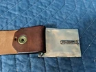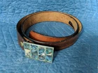 Vintage Handcrafted dark brown Leather 45" Belt with Abalone Inlay 3" buckle in a rectangular silver border. Leather is in great condition, minimal wear. Due to handcrafted nature, belt has slight undulation along length. The 5 buckle holes at end begin at 37.5" and end at 41.5". Thank you for viewing this item! --------- Message for Buyers: *Contact Seller if unsatisfied with purchase before leaving a review *Seller is not responsible for additional eBay fees and taxes charged to Buyer by eBay *Each piece is unique and all elements may vary, see photos, and ask questions *Due to monitor/screen settings and lighting, the actual color of the item may vary slightly from the color shown on the pictures *For vintage (> 20 years old) due to age may have some fading, holes, distressing, stains, and other imperfections *If applicable Shoe Tree or paper shoe insert not included *All Sales are subject to fees upon return *For some items Seller does not sell/ship outside the continental U.S. *Depending on the circumstances Bidders that retract Bids may be reported to eBay and multiple offenses may lead to Blocked Bidding *Item is from a Smoke Free Home. Bidders/Buyers with Allergies, Sensitivities or concerns is encouraged to ask questions before bidding *Disclaimer - The item has not been tested by Seller and may contain carcinogens, allergens, emit odors, and/or cause irritations. All Bidders/Buyers agree to hold aforementioned elements harmless and release the Seller of any liability.