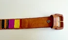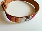 This beautiful leather belt with a woven design is a perfect addition to any casual outfit. The belt is made of high-quality leather and features a unique multi-color design that will surely catch the eye of anyone who sees it. The belt is perfect for adults of any gender, and it will complement any ethnic or peasant look. The belt is an original piece from Guatemala, and it is perfect for anyone who loves vintage accessories. The belt is perfect for anyone who is looking for a specialty item to add to their collection. It is a perfect match for any outfit, and it is sure to make a statement wherever you go.