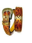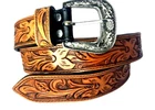 Western Heavy Duty Men's Leather Belt Carving Designer Belt SS Western Buckle Classic leather belt with buckle. 34 mm width of the belt. 5 holes for a better fit. Tan Color. Waist sizes 40-44 inches. 100% Spanish Leather. Unique color finish belt. Material: 100% Leather.