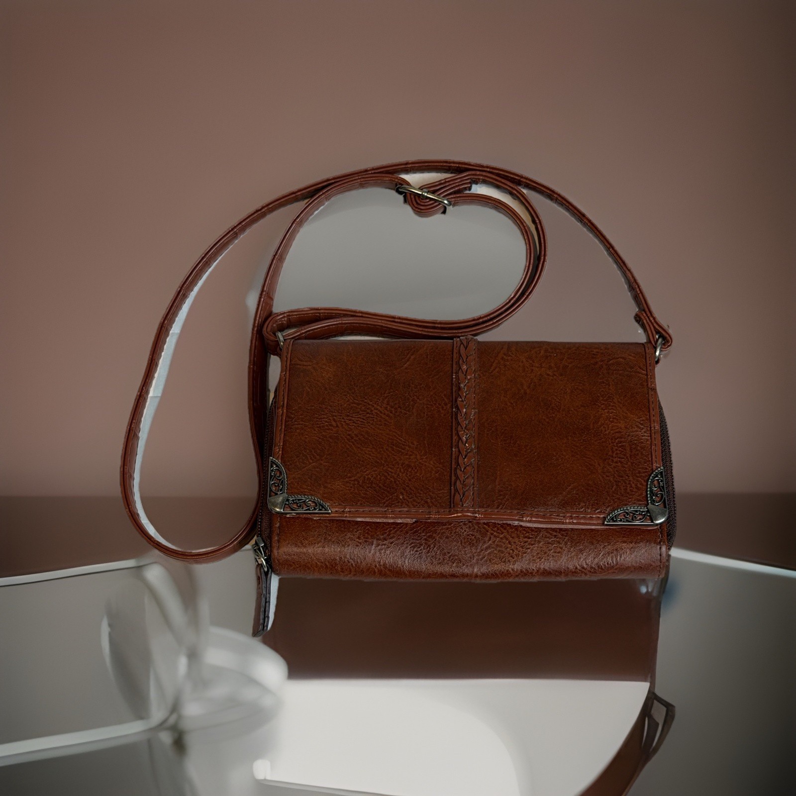 Vintage Distressed Leather Crossbody Bag large