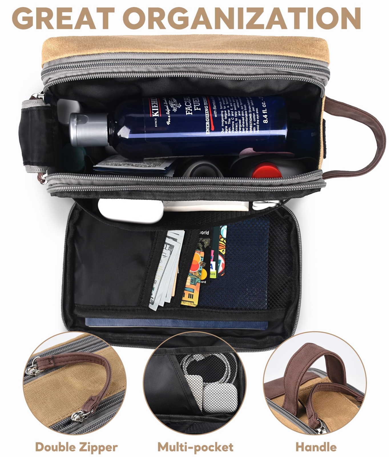 Exclusive Offers Await! Welcome to our stores! We promise you'll be satisfied. Toiletry Bag for Men,Leather and Canvas Mens Toiletry Bag,Large Travel Toiletry Organizer,Dopp Kit for Men,Water-resistant Shaving Bag for Travel Toiletries Accessories (Brown) Item Details Product Features ๐๐ถ๐ด๐ต ๐ค๐๐ฎ๐น๐ถ๐๐ ๐ ๐ฎ๐๐ฒ๐ฟ๐ถ๐ฎ๐น๐ - travel toiletry bag is made of canvas and PU leather, known for its lightness and well-made quality, making it the perfect combination for travel. This special material is waterproof and therefore provides protection for toiletries in the bathroom. Making it a versatile must-have accessory for travel. ๐ ๐๐น๐๐ถ๐ณ๐๐ป๐ฐ๐๐ถ๐ผ๐ป๐ฎ๐น ๐ง๐ผ๐ถ๐น๐ฒ๐๐ฟ๐ ๐ข๐ฟ๐ด๐ฎ๐ป๐ถ๐๐ฒ๐ฟ - The improved toiletry bag can organize your toiletries. The main compartment adopts a double zipper large opening design, and the back panel can be lay them flat, easily organize your items. Perfect both sides design, with dry wet separation waterproof PVC pocket, which is easy to store wet face towels and shaving supplies, while the back pocket is used as a travel document holder to store your boarding pass, ID card, money, etc. ๐๐ฒ๐๐ถ๐ด๐ป๐ฒ๐ฑ ๐ณ๐ผ๐ฟ ๐ง๐ฟ๐ฎ๐๐ฒ๐น - This travel toiletry bag is designed with travelers in mind, comes with a sturdy PU leather side handles ensuring easy carrying of the bag while traveling. The toiletry bag also has a pocket compartment, an elastic band inside, and fashionable canvas material to meet different storage needs. ๐ฃ๐ฒ๐ฟ๐ณ๐ฒ๐ฐ๐ ๐ฆ๐ถ๐๐ฒ - The toiletry bag is spacious and expandable to provide more storage space, making it easy to pack all the toiletries needed for travel. 9.05''L x 4.5''W x 5.9''H. ๐ ๐ผ๐ฟ๐ฒ ๐ฆ๐ฐ๐ฒ๐ป๐ฎ๐ฟ๐ถ๐ผ๐ -The toiletry bag can be a good present for men and women, it can be used as a toiletry bag for men, a shaving kit, a safe place to store prescription medications when traveling or as airline carry-on luggage. On a business trip Or travel freely, this mens toiletry bag is easy to access and is a reliable essential for the traveler. Anything were to happen to your travel toiletry bag in first 24 months, Pls contact us through 's messaging system. Payment Information โฆฟ All payments are handled securely through eBay. โฆฟ We accept PayPal and all major credit cards. โฆฟ Payment must be completed immediately after purchase. โฆฟ If there are any issues with the payment, please contact our support team for assistance. Shipping Details โฆฟ We only ship to the address provided at checkout. Please verify your address before completing your purchase. โฆฟ Orders are processed within 1 business day (excluding weekends and holidays). โฆฟ Delivery usually takes 3-5 business days. โฆฟ We use trusted shipping services such as UPS, FedEx, and USPS. โฆฟ Shipping is available only within the contiguous United States. We do not ship to Alaska, Hawaii, Puerto Rico, or PO Boxes. โฆฟ If there are any shipping delays, please contact us for support. Return Policy โฆฟ We offer a 30-day return policy for your peace of mind. โฆฟ If you are not satisfied with your purchase, you can return it within 30 days for a full refund. โฆฟ Please contact us to obtain the return address before sending back any items. โฆฟ Returns must be in their original condition and packaging.