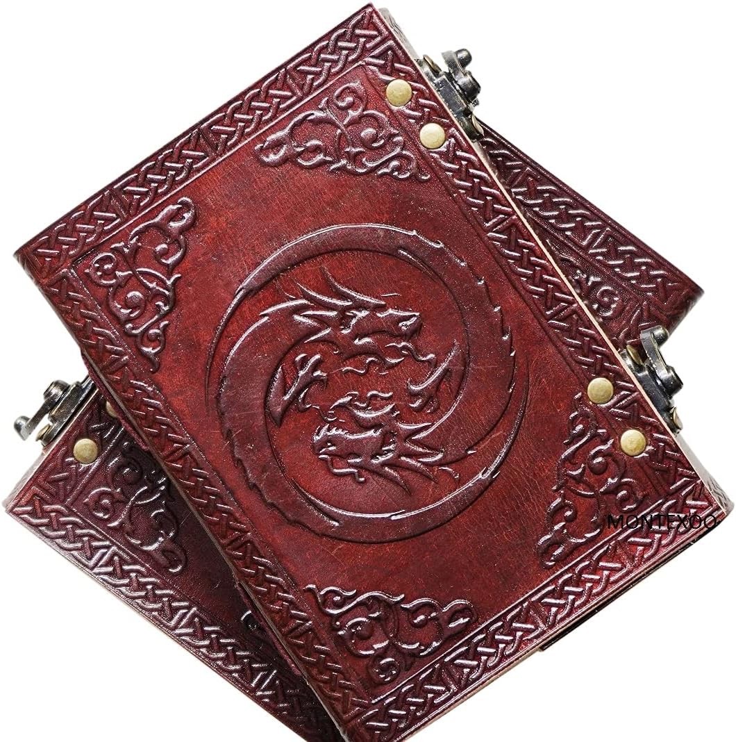 Unleash your creativity with this Leather Dragon Diary Notebook – 5x7" Brown Vintage Journal (Buy 1 Get 1 Free Combo) . Handcrafted from premium genuine leather, this unique notebook features an eye-catching embossed dragon design that symbolizes strength and imagination. The compact 5x7" size makes it perfect for daily journaling, sketching, travel notes, or personal reflections. Inside, you’ll find 220 unlined pages that give you complete freedom to write, draw, or doodle without restrictions. With its rustic vintage finish and durable binding, this leather diary is designed to age beautifully over time. Whether for personal use or as a thoughtful gift, this B1G1 combo offers exceptional value and timeless style. Key Features ✨ Buy 1 Get 1 Free Combo – Great value pack 🐉 Embossed Dragon Design – Bold & artistic vintage look 📖 220 Unlined Pages – Ideal for writing, sketching & notes 📏 Convenient 5x7" Size – Portable & travel-friendly 🧵 Handcrafted Genuine Leather – Premium quality & durability 🎁 Perfect Gift Choice – Suitable for students, writers & artists ⏳ Vintage Rustic Finish – Ages beautifully with use