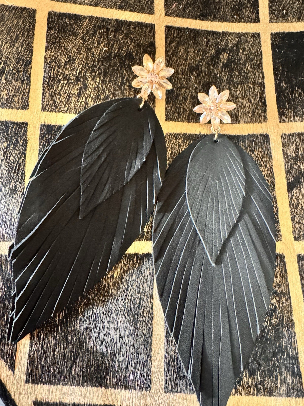Layered Leather with Beautiful Flower Sequin Stud Style Earrings.