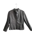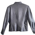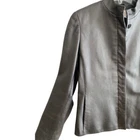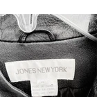This stylish leather jacket features a gunmetal hidden button front with a moto style that is perfect for any woman's wardrobe! The outer shell is made of high-quality leather, while the inner lining provides comfort and warmth. The jacket is a size 8 and comes in a trendy gray black color that will complement any outfit. The closure is secure with buttons and the jacket has a regular fit that will flatter any body type. The jacket is perfect for any occasion and will bring out the fashionista in you. Add this jacket to your collection today! Good Condition Soft leather Slash pockets Button Jones NY Pit to pit 19.5 Pit down 13” Shoulder down 23” Fully lined