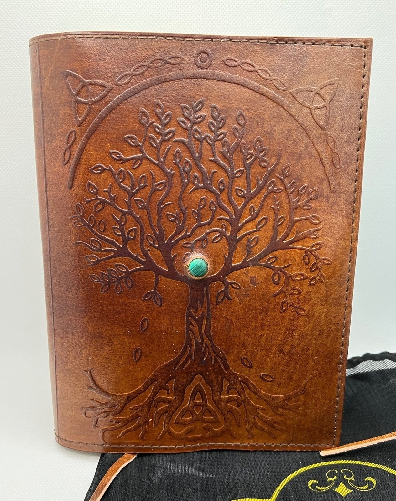 Journal, Notebook, Daily Notepad or Diary by by Komal's Passion Leather - New. - Handcrafted. - 100% Genuine Buffalo Leather. - Recycled Paper. - Refillable. - 8x6 - Suitable for all pens and pencils. - Lined Paper counting both sides. - 120 sheets/240 pages (counting both sides) of blank. - White paper. * Perfect compact size for carrying in your bag. * Handmade Tree of life design to make the cover more beautiful. Hand cut stone added to enhance the beauty of this beautiful leather journal. * The leather wrap-around strap effectively keeps your journal closed and also acts as a handy bookmark. * This old-fashioned character leather has an amazing smell! (Ref Box 1A)